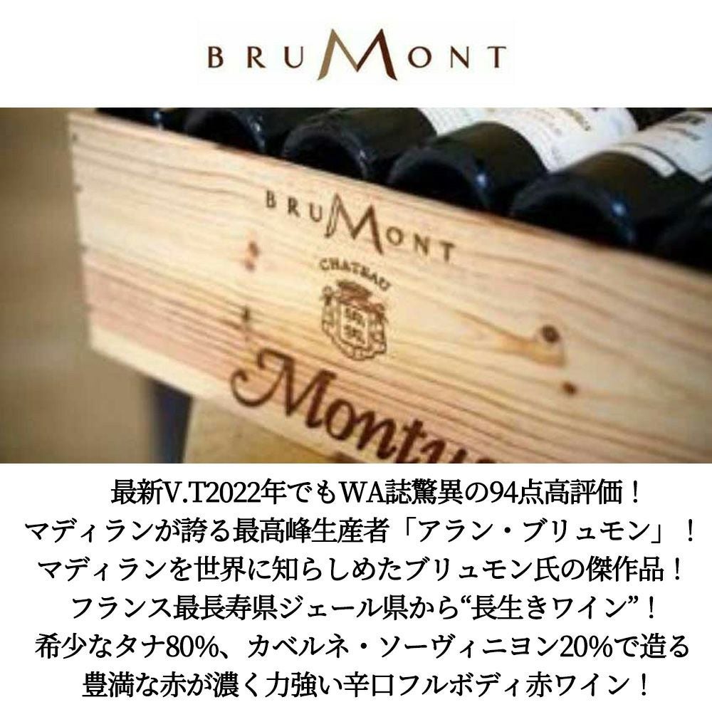 他の画像を見る シャトー モンテュス 2019 マディラン最高峰生産者 ドメーヌ アラン ブリュモン AOC マディラン ワインアドヴォケイト誌驚異の94点Chateau Montus 2019 Domaine Alain Brumont AOC Madiran 赤ワイン フランス フルボディ 辛口 当店特別価格 ¥ 4,786 税込 カートに入れる お気に入りに登録する