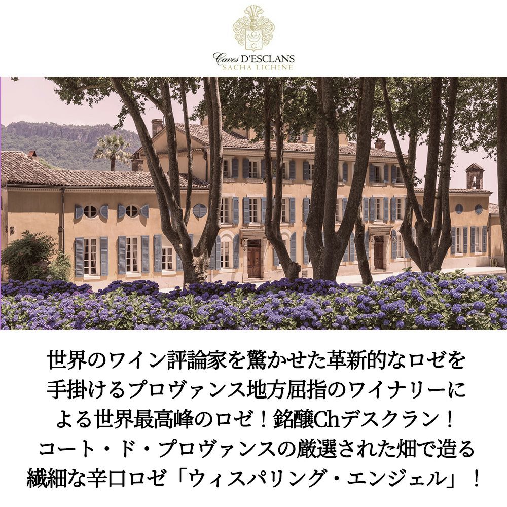 他の画像を見る シャトー デスクラン ウィスパリング エンジェル コート ド プロヴァンス ロゼ 2024 AOCコート ド プロヴァンス 正規品 辛口 750mlChateau D'esclans Whispering Angel Cotes de Provence ROSE 2024 AOC Cotes de Provence ロゼ フランス 辛口 当店特別価格 ¥ 2,696 税込 カートに入れる お気に入りに登録する