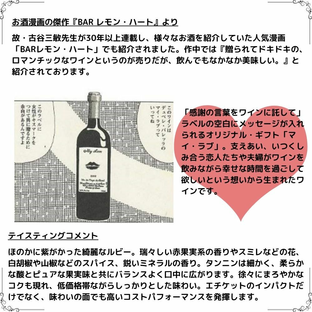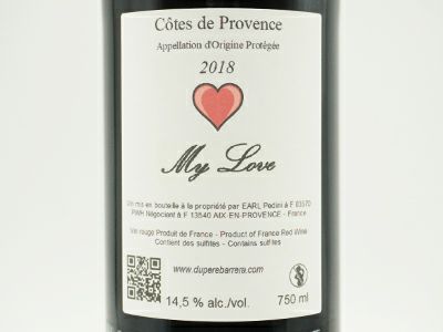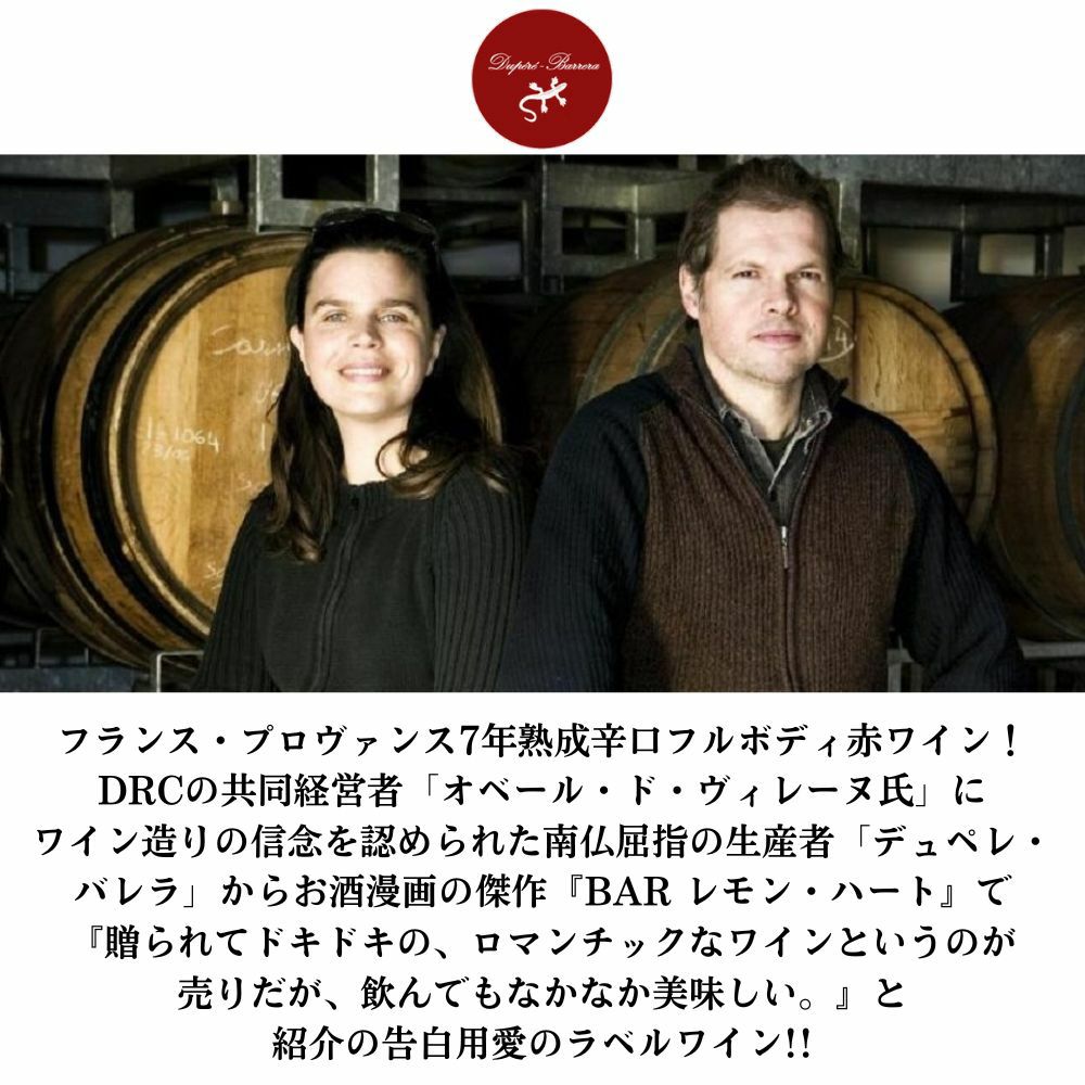 他の画像を見る マイ ラブ 2018 ムールヴェードル45%以上 18ヶ月以上熟成 デュペレ バレラ AOPコート ド プロヴァンス ノンフィルターMY LOVE 2018 Dupere Barrera A.O.P. COTES DE PROVENCE 赤ワイン フランス フルボディ 辛口 当店特別価格 ¥ 1,943 税込 在庫切れ 詳細を見る お気に入りに登録する