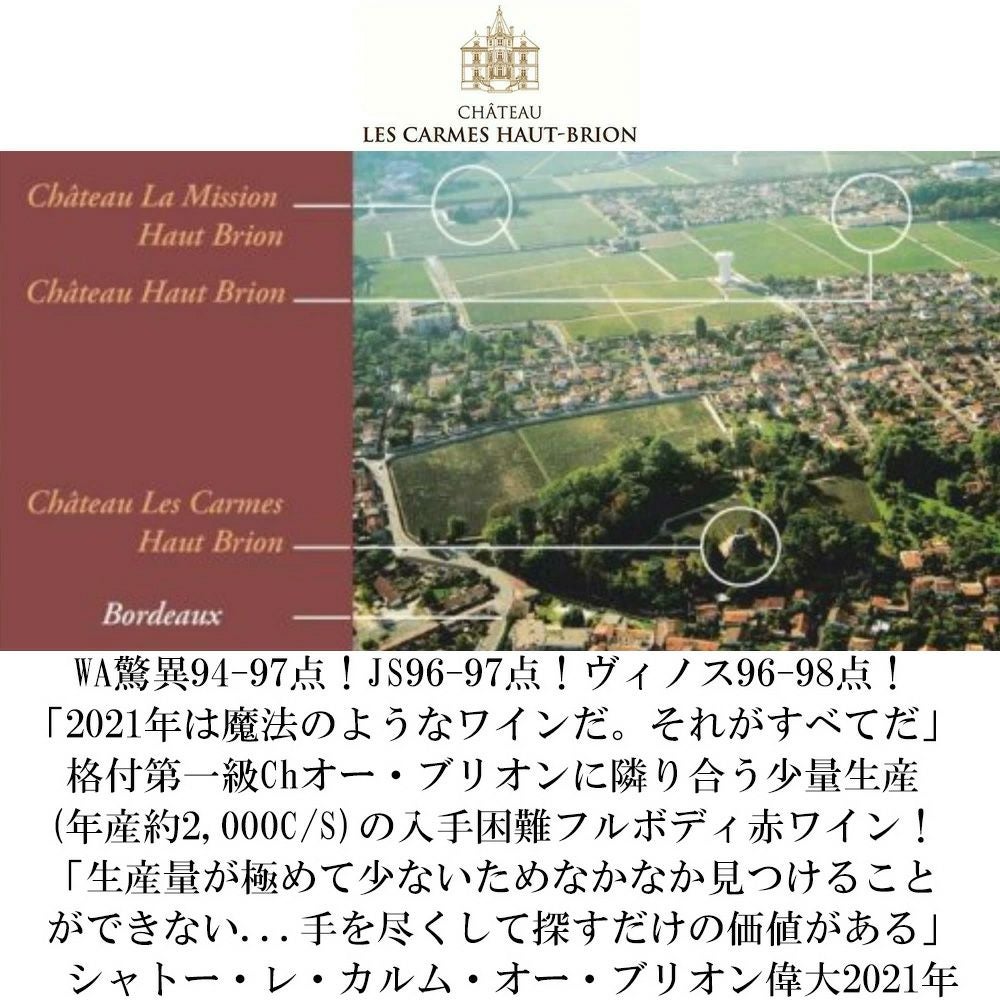 他の画像を見る シャトー レ カルム オー ブリオン 2021 AOCペサック レオニャン シャトー元詰 赤 辛口 フルボディ フランス ボルドーChateau Les Carmes Haut-Brion [2021] AOC Pessac-Leognan 赤ワイン フランス フルボディ 辛口 当店特別価格 ¥ 21,924 税込 在庫切れ 詳細を見る お気に入りに登録する