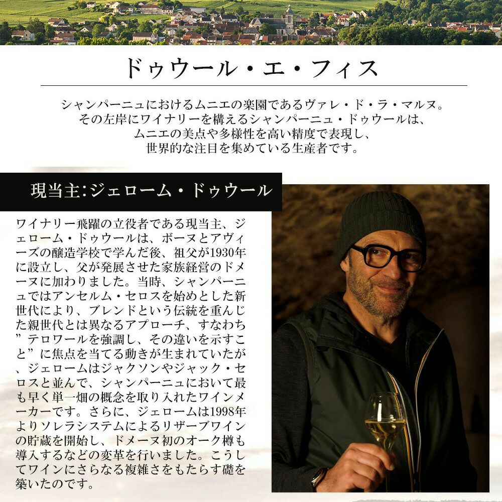 他の画像を見る ドゥウール エ フィス シャンパーニュ グランド レゼルヴ NV (現当主 ジェローム ドゥウール家)ドサージュわずか1.1g 白 辛口 シャンパンDehours Champagne NV Grande Reserve Brut Mareuil 白ワイン シャンパン 辛口 当店特別価格 ¥ 6,360 税込 カートに入れる お気に入りに登録する