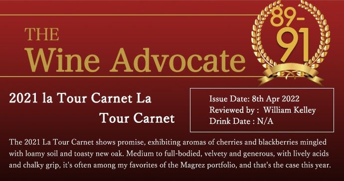 他の画像を見る シャトー ラ トゥール カルネ 2021 グラン クリュ クラッセ メドック公式格付第4級 AOCオー メドック 重厚ボトル WA誌驚異の89-91点Chateau La Tour Carnet 2021 Grand Cru Classe 赤ワイン フランス フルボディ 辛口 当店特別価格 ¥ 5,726 税込 カートに入れる お気に入りに登録する