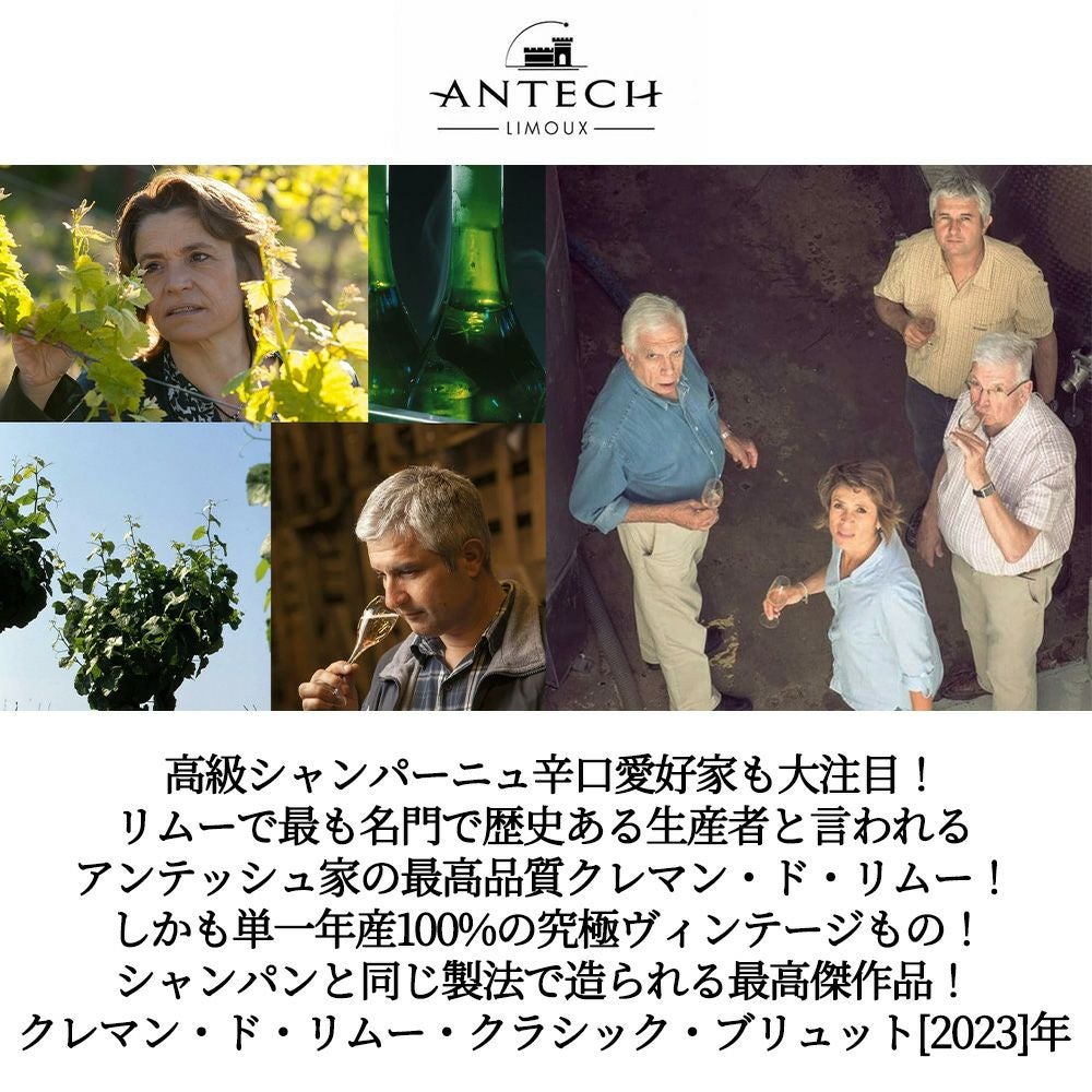 他の画像を見る クレマン ド リムー クラシック ブリュット ヴィンテージ 2023 メゾン アンテッシュ(6代目フランソワーズ アンテッシュ家)Cremant de Limoux Classique Brut 2023 Maison Antech Limoux 白ワイン スパークリング フランス 辛口 当店特別価格 ¥ 2,487 税込 カートに入れる お気に入りに登録する
