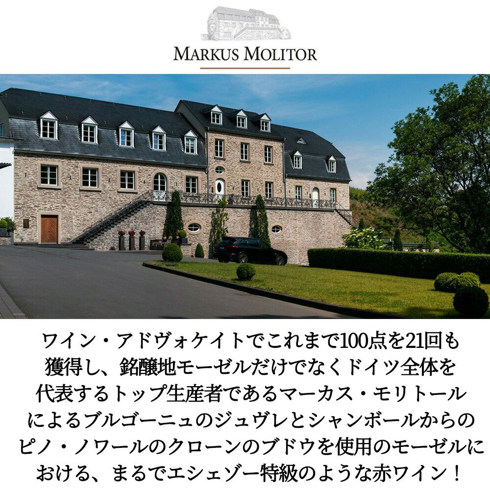 他の画像を見る マーカス モリトール ピノ ノワール ブラウネベルガー マンデルグラーベン トロッケン 2020 ワイングート マーカス モリトール元詰 自然派 辛口 赤 13% ワインアドヴォケイト誌驚異の93点(2027 - 2040)&ヴィノム誌90点 赤ワイン ドイツ 辛口 自然派 当店特別価格 ¥ 6,173 税込 カートに入れる お気に入りに登録する