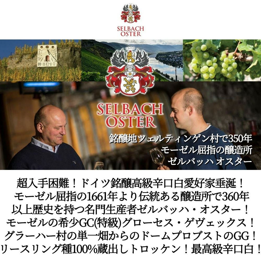 他の画像を見る グラーハー ドームプロブスト G G リースリング トロッケン 2021 ゼルバッハ オスター家元詰 正規品Graach Domprobst G.G. (Grosses) (Gewachs) Riesling Trocken 2021 Weingut Selbach-Oster Zeltingen Mosel 白ワイン ドイツ 辛口 当店特別価格 ¥ 6,166 税込 カートに入れる お気に入りに登録する