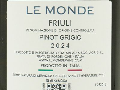 他の画像を見る ピノ グリージオ フリウリ 2024 レ モンデPinot Grigio Friuli 2024 Le Monde 白ワイン イタリア 辛口 当店特別価格 ¥ 2,271 税込 カートに入れる お気に入りに登録する