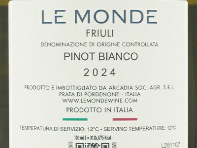 他の画像を見る ピノ ビアンコ フリウリ 2024 レ モンデPinot Bianco Friuli 2024 Le Monde 白ワイン イタリア 辛口 当店特別価格 ¥ 2,271 税込 カートに入れる お気に入りに登録する
