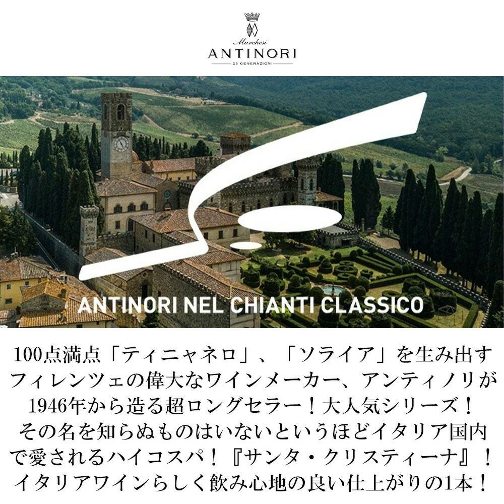 他の画像を見る サンタ クリスティーナ ロッソ 2023 サンタ クリスティーナ(アンティノリ) IGP.トスカーナ 赤 750ml 正規品 Santa Cristina Rosso [2023] IGP Toscana 赤ワイン イタリア ミディアムボディ 辛口 当店特別価格 ¥ 1,755 税込 カートに入れる お気に入りに登録する