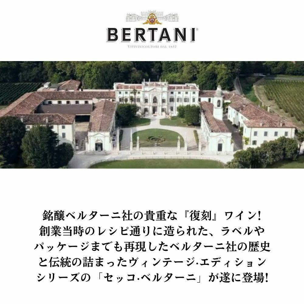 他の画像を見る セッコ ベルターニ ヴィンテージ エディション 2020年 ベルターニ社の貴重な『復刻』ワイン I.G.TヴェローナSecco Bertani Vintage Edition 2020 Bertani IGT Verona 赤ワイン イタリア フルボディ 辛口 当店特別価格 ¥ 4,503 税込 カートに入れる お気に入りに登録する