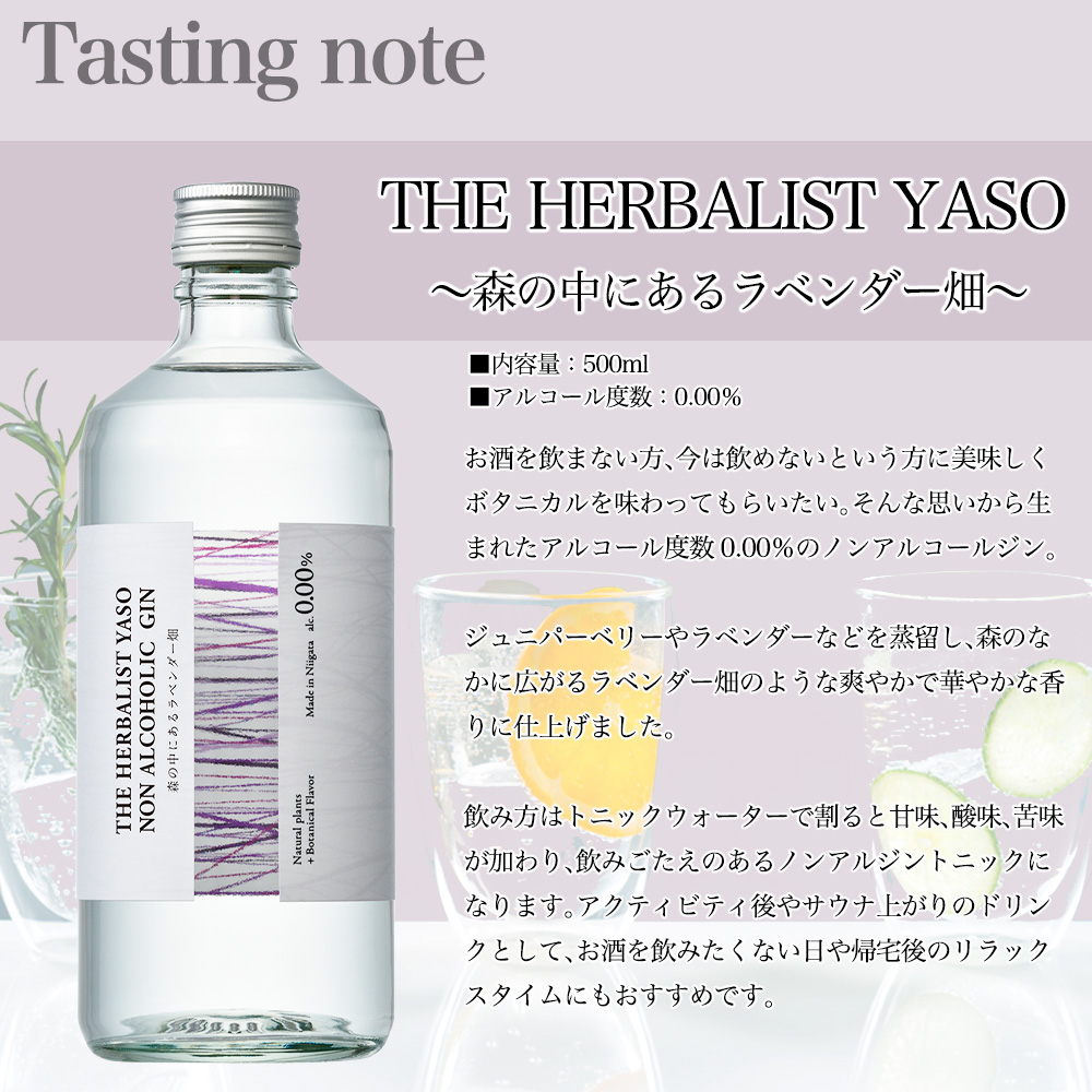 【正規品】THE・HERBALIST・YASO・森の中にあるラベンダー畑・NON・ALCOHOLIC・GIN・ノンアルコールジン・500ml・0.00%