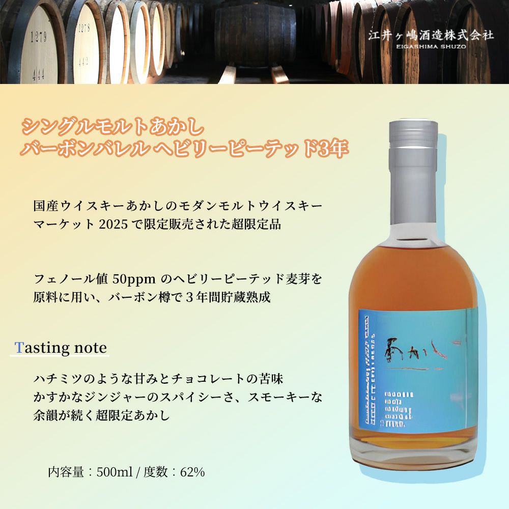 他の画像を見る 【正規品 箱入】シングルモルト あかし バーボンバレル ヘビリーピーテッド 3年 500ml 62% ウイスキー 当店特別価格 ¥ 10,032 税込 在庫切れ 詳細を見る お気に入りに登録する