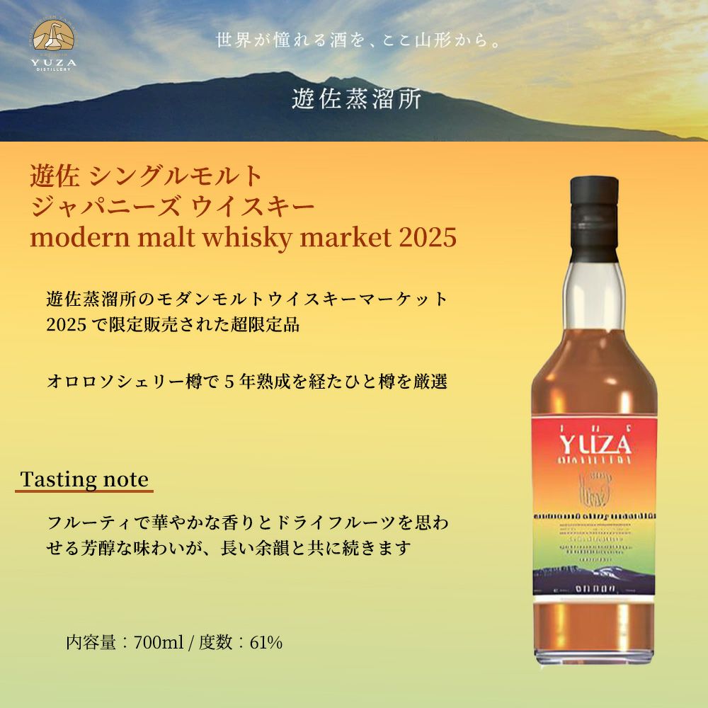 他の画像を見る 【正規品 箱入】遊佐 シングルモルト ジャパニーズ ウイスキー モダン モルト ウイスキー マーケット 2025 700ml 61% ウイスキー 当店特別価格 ¥ 20,900 税込 在庫切れ 詳細を見る お気に入りに登録する