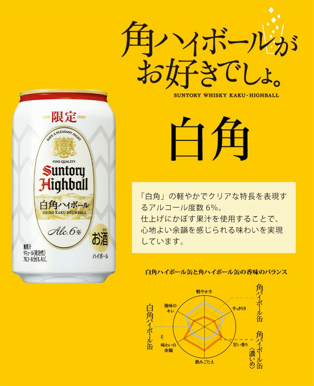 他の画像を見る 【送料無料】白角 ハイボール缶 350ml×24本(1ケース) 6%SUNTORY WHISKY SHIROKAKU BLENDED JAPANESE WHISKY 350ml 6% ウイスキー 送料無料 当店特別価格 ¥ 5,159 税込 在庫切れ 詳細を見る お気に入りに登録する