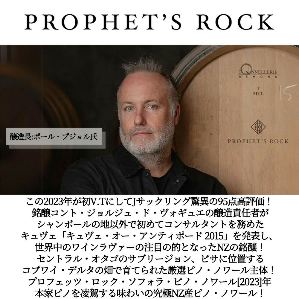 他の画像を見る プロフェッツ ロック ホーム ヴィンヤード ピノ ノワール 2022 セントラル オタゴ ベンディゴ地区 ジェームス サックリング驚異の97点Prophet's Rock Home Vineyard Pinot Noir [2022] 赤ワイン ニュージーランド フルボディ 辛口 当店特別価格 ¥ 7,816 税込 カートに入れる お気に入りに登録する