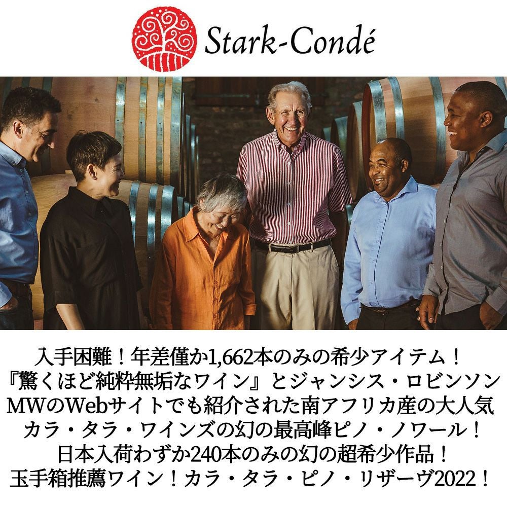 他の画像を見る カラ タラ ピノ ノワール リザーヴ 2022 フレンチオーク樽100%&12ヶ月熟成 カラ タラ ワインズ(スターク コンデ ワインズ)元詰Kara Tara Pinot Noir Reserve 2022 Kara Tara Wines 赤ワイン ミディアムボディ 辛口 当店特別価格 ¥ 5,517 税込 カートに入れる お気に入りに登録する