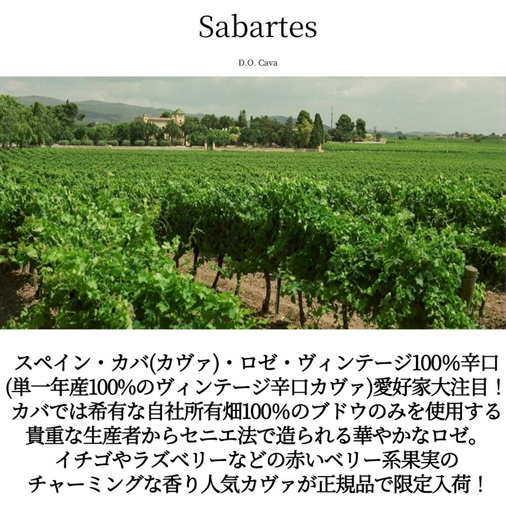 他の画像を見る カバ ブリュット ロサド (ロゼ) ヴィンテージ 2021 サバルテス 自然派 オーガニック認証 瓶内熟成12ヶ月以上 D.O.カヴァ 正規品CAVA Brut Rosado Vintage 2021 (Metodo Tradicional) スパークリング ロゼ スペイン 辛口 自然派 当店特別価格 ¥ 2,257 税込 カートに入れる お気に入りに登録する