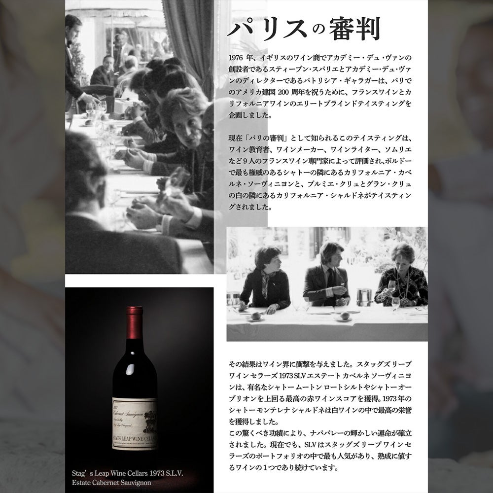 他の画像を見る スタッグスリープ ワイン セラーズ カベルネ ソーヴィニヨン S.L.V 2005 蔵出し品 自社畑100% 正規品 20年熟成品 赤 辛口STAG'S LEAP WINE CELLARS Cabernet Sauvignon S.L.V 赤ワイン アメリカ フルボディ 辛口 当店特別価格 ¥ 46,816 税込 カートに入れる お気に入りに登録する
