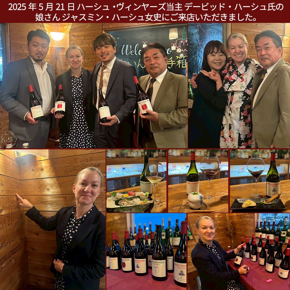 【ワインづくりを「ぶどう栽培の一段階」と捉え、「土地と果物の存在を正しく伝える」ことをポリシーとしたワインづくりが行われる。すべての過程を通じてぶどうを丁寧に扱うことが一貫しており、一つの畑から収穫されたぶどうは他の畑のものと混じることなく、醸造所内にある無数のオープントップのタンクで醗酵が行われる。醗酵後、フレンチオークで熟成が行われ、瓶詰めまでブレンド、ラッキングは一切行われず、フィルタリングも行わない。ミネラル感のある酸味と複雑味、タンニンと果実味のバランスがハーシュ・ヴィンヤードのワインを際立たせている。ほとん どのヴィンテージにおいて、ハーシュのワインはすぐに飲んでも楽しめるが、構成力、バランス、そして添加物を使っていない健全さゆえに、セラーでの熟成も期待できる。