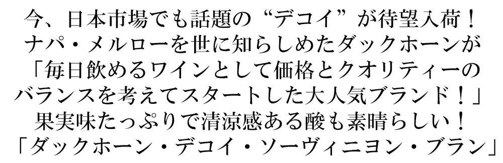 他の画像を見る ダックホーン ヴィンヤーズ デコイ ソーヴィニヨン ブラン 2024 カリフォルニア 白 辛口 750mlDuckhorn Vineyards DECOY Sauvignon Blanc 2024 California 白ワイン アメリカ 辛口 当店特別価格 ¥ 2,706 税込 カートに入れる お気に入りに登録する