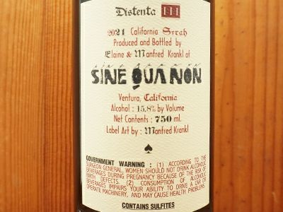 他の画像を見る シネ クア ノン ディステンタ スリー シラー 2021 蔵出し品 マンフレッド クランクル元詰 ロウ封印トップ&重厚ボトル 正規品SINE QUA NON DISTENTA iii (THREE) SYRAH 2021 Produced 赤ワイン アメリカ フルボディ 辛口 当店特別価格 ¥ 66,481 税込 カートに入れる お気に入りに登録する