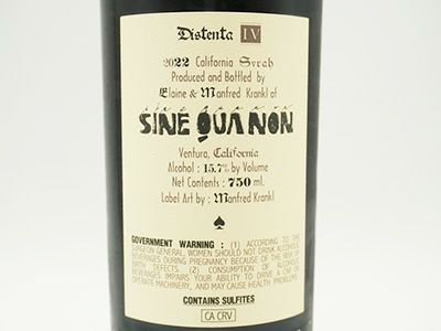 他の画像を見る 【お1人様1本限り】シネ クア ノン ディステンタ フォー シラー 2022 蔵出し作品 マンフレッド クランクル元詰 ワインアドヴォケイト驚異の94点+ 正規品SINE QUA NON DISTENTA Ⅳ(FOUR) SYRAH 2022 赤ワイン アメリカ フルボディ 辛口 当店特別価格 ¥ 62,700 税込 在庫切れ 詳細を見る お気に入りに登録する