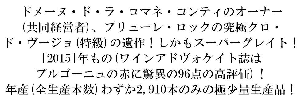他の画像を見る クロ ド ヴージョ グラン クリュ 特級 2015 蔵出し品 ドメーヌ プリューレ ロック元詰 (全世界に)2,910本のみ 赤 辛口 フルボディClos de Vougeot Grand Cru 2015 Domaine Prieureu 赤ワイン フランス フルボディ 辛口 当店特別価格 ¥ 170,126 税込 在庫切れ 詳細を見る お気に入りに登録する