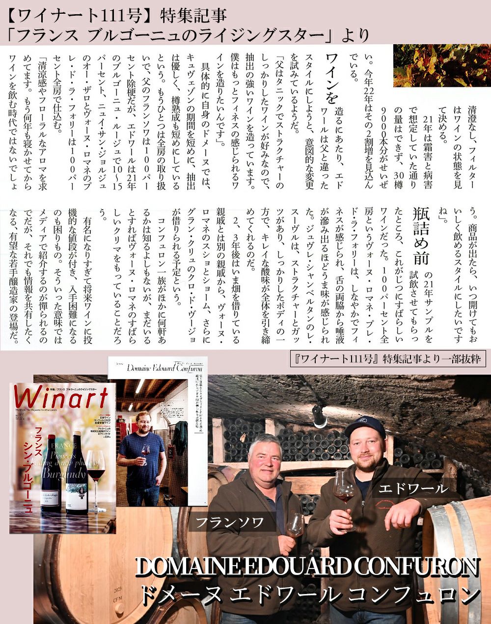 他の画像を見る ブルゴーニュ ピノ ノワール 2022 蔵出し数量限定作品 ドメーヌ エドワール コンフュロン元詰 ジャスパーモリス驚異88点 Bourgogne Pinot Noir 2022 DOMAINE EDOUARD CONFURON 赤ワイン フランス ミディアムボディ 辛口 当店特別価格 ¥ 6,155 税込 在庫切れ 詳細を見る お気に入りに登録する