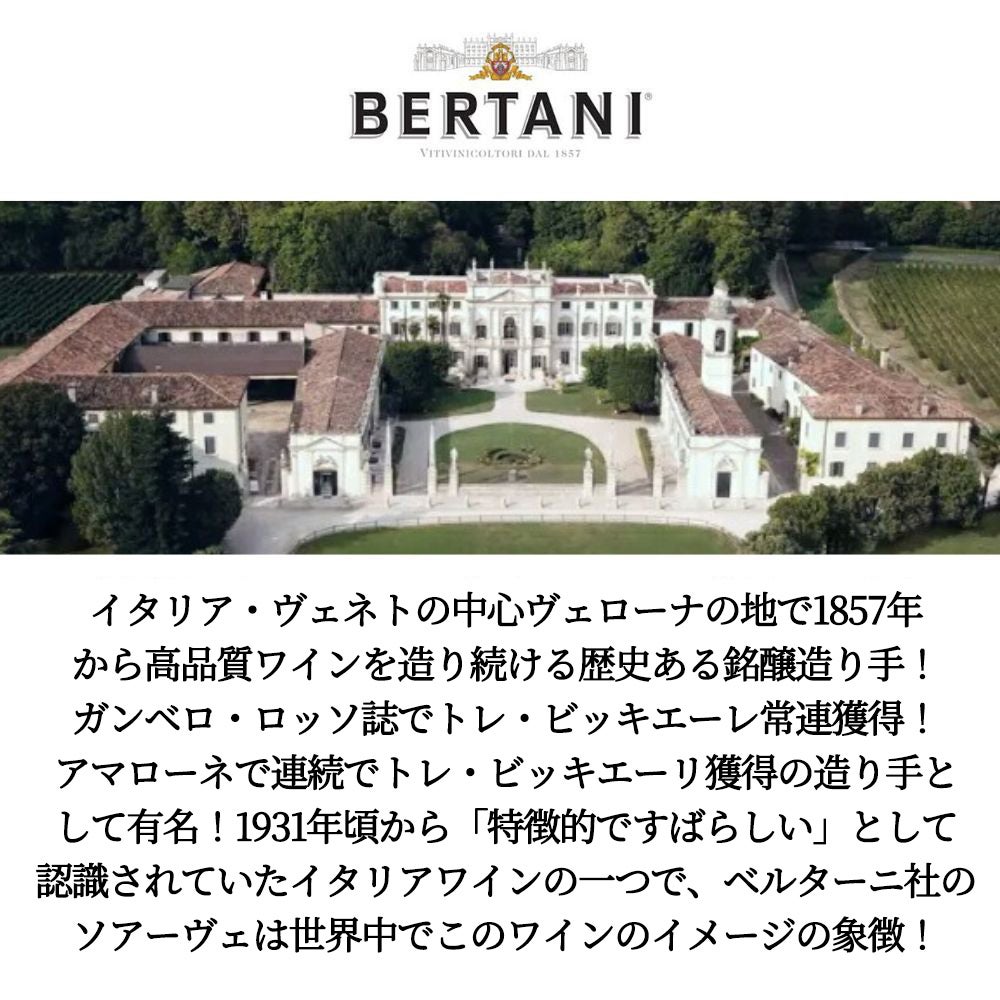他の画像を見る ソアーヴェ ヴィンテージ エディション 2023 ベルターニSoave Vintage Edition 2023 Bertani 白ワイン イタリア 辛口 当店特別価格 ¥ 3,719 税込 カートに入れる お気に入りに登録する