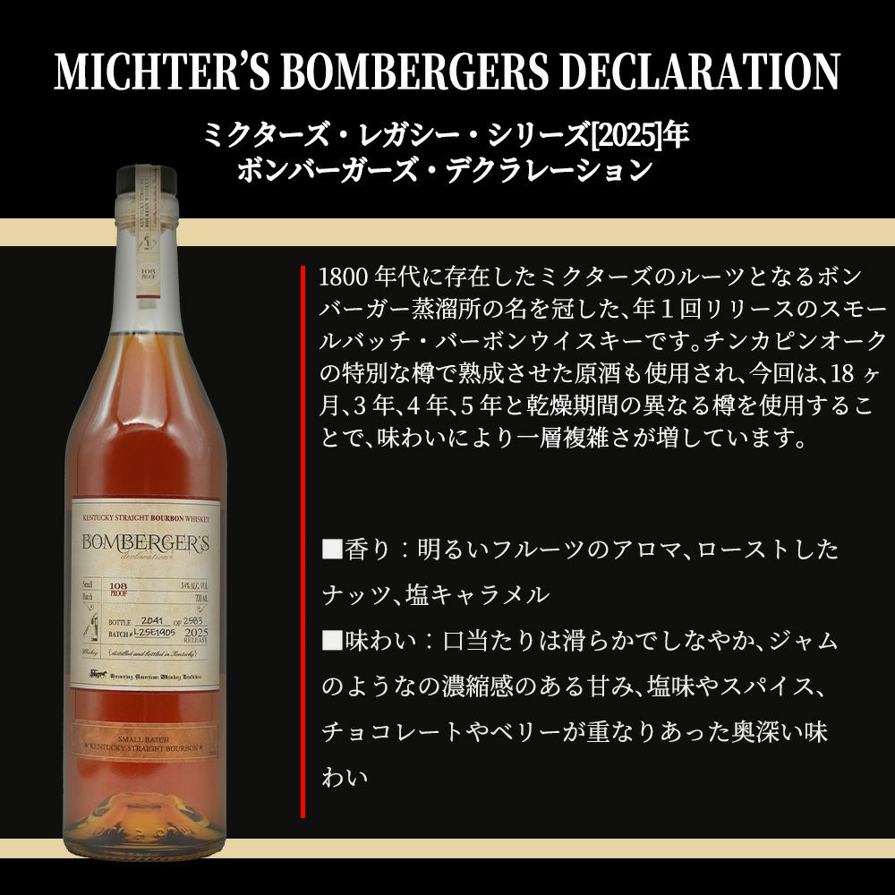 他の画像を見る 【正規品】ミクターズ レガシー シリーズ 2025 ボンバーガーズ デクラレーション バーボン ウイスキー スモールバッチ ケンタッキーMICHTER’S BOMBERGERS DECLARATION BOURBON WHISKY SMALL ウイスキー アメリカ 当店特別価格 ¥ 20,282 税込 在庫切れ 詳細を見る お気に入りに登録する