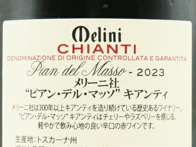 他の画像を見る ピアン デル マッソ キアンティ 2023 メリーニ イタリア トスカーナ 赤ワイン 750mlPian del Masso Chianti 2023 Melini 赤ワイン イタリア 辛口 当店特別価格 ¥ 1,380 税込 在庫切れ 詳細を見る お気に入りに登録する
