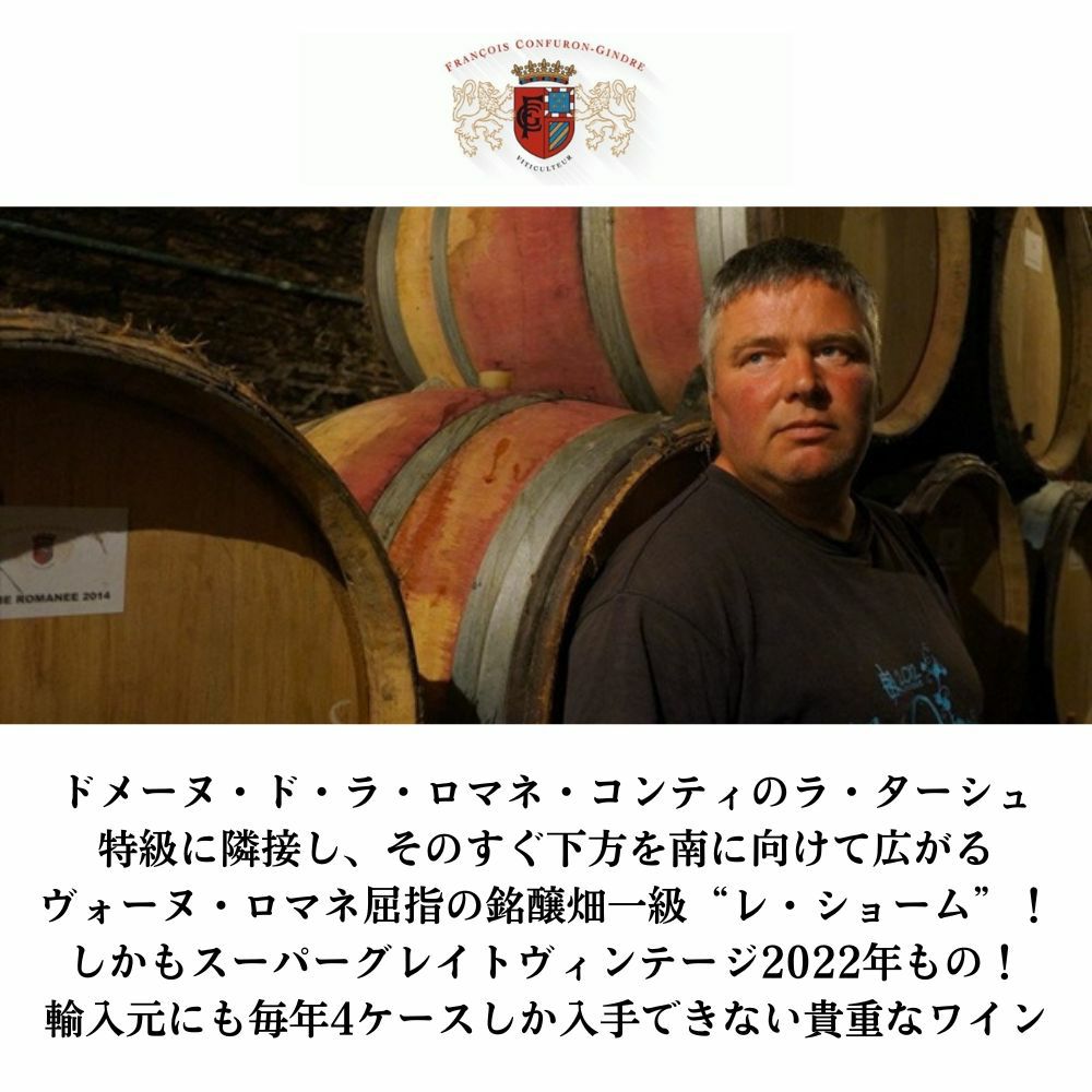 他の画像を見る ヴォーヌ ロマネ プルミエ クリュ 一級 レ ショーム 2022ドメーヌ フランソワ コンフュロン ジャンドル元詰 AOC 正規品 ジャスパーモリス驚異92?94点Vosne Romanee 1er Cru Les Chaumes 2022 赤ワイン フランス フルボディ 辛口 当店特別価格 ¥ 17,745 税込 在庫切れ 詳細を見る お気に入りに登録する