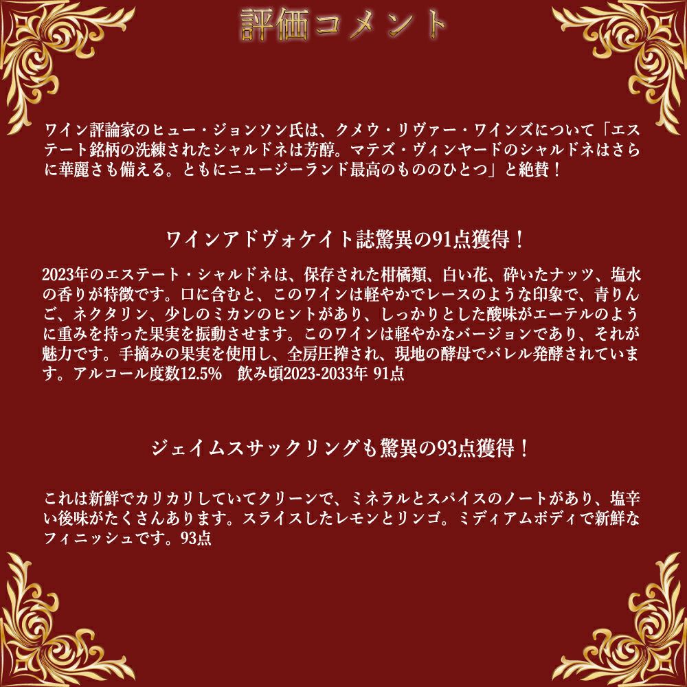 他の画像を見る クメウ リヴァー エステート シャルドネ 2023 ワインズ リミティッド元詰 WA誌驚異の91点&JS驚異の93点&JM驚異の91獲得ワイン 正規品Kumeu River Estate Chardonnay 2023 Kumeu River 白ワイン ニュージーランド 辛口 当店特別価格 ¥ 5,681 税込 在庫切れ 詳細を見る お気に入りに登録する