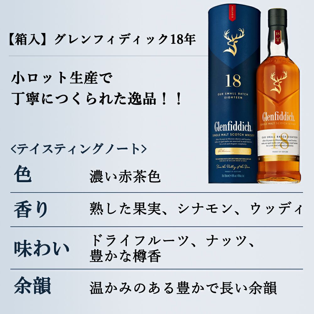 他の画像を見る 【正規品 箱入】グレンフィディック[18]年 スモールバッチ リザーブ シングル モルト スコッチ ウイスキー 700ml 40%GLENFIDDICH AGED 18 YEAR SMALL BATCH RESERVE SINGLE MALT ウイスキー 当店特別価格 ¥ 14,107 税込 在庫切れ 詳細を見る お気に入りに登録する