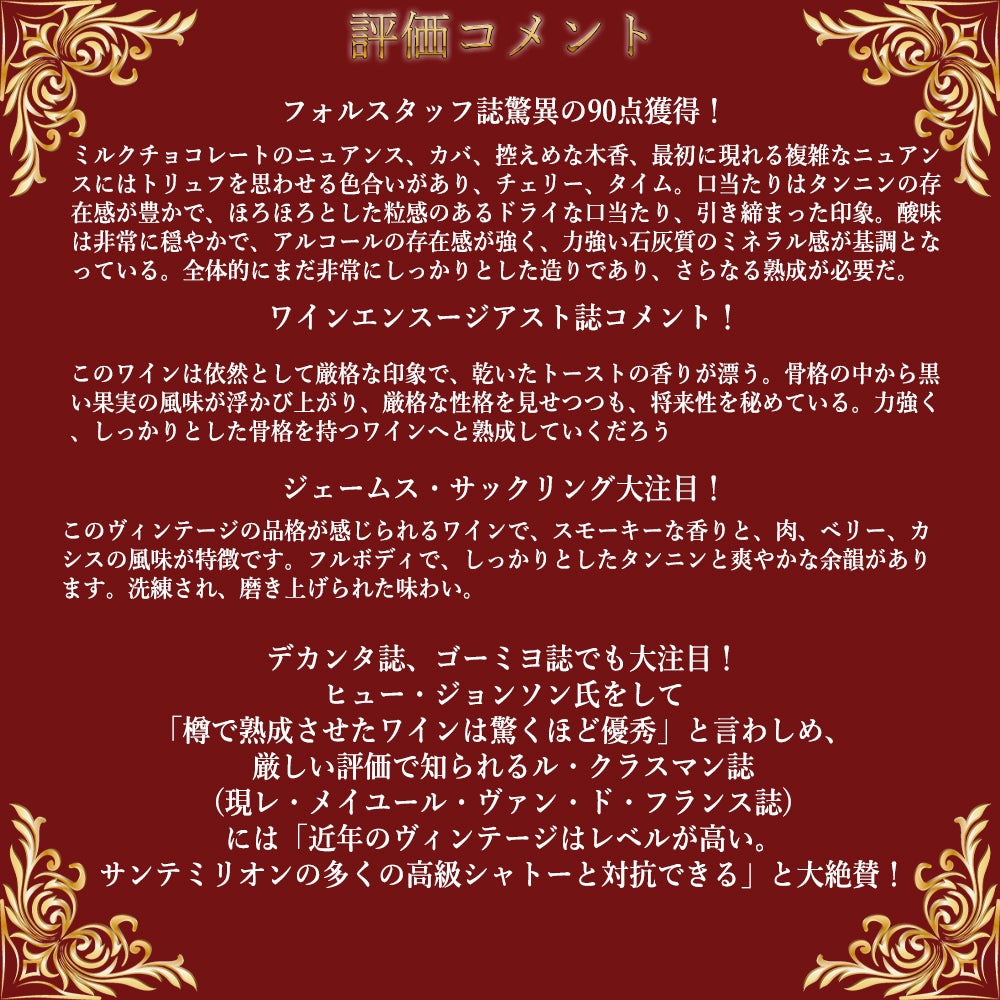 他の画像を見る シャトー シトラン 2010年 AOCオー メドック (過去クリュ ブルジョワ シューペリュール) (シャトー グリュオー ラローズのメルロー家所有シャトー)Chateau Citran 2010 AOC Haut Medoc【eu_ff】【BO2】 【MO★11】 赤ワイン フランス フルボディ 辛口 当店特別価格 ¥ 4,692 税込 在庫切れ 詳細を見る お気に入りに登録する