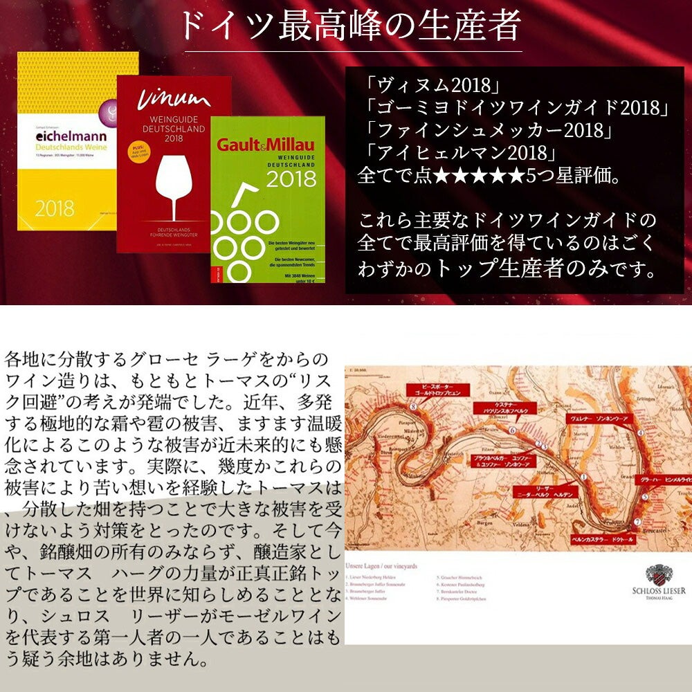 他の画像を見る シュペートブルグンダー トロッケン 2022 蔵出し超限定作品 シュロス リーザー元詰 (トーマス ハーク家) モーゼル VDP ロウ封印キャップSpatburgunder Trocken 2022 Weingut Schloss Lieser 赤ワイン ドイツ フルボディ 辛口 当店特別価格 ¥ 12,160 税込 カートに入れる お気に入りに登録する