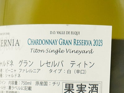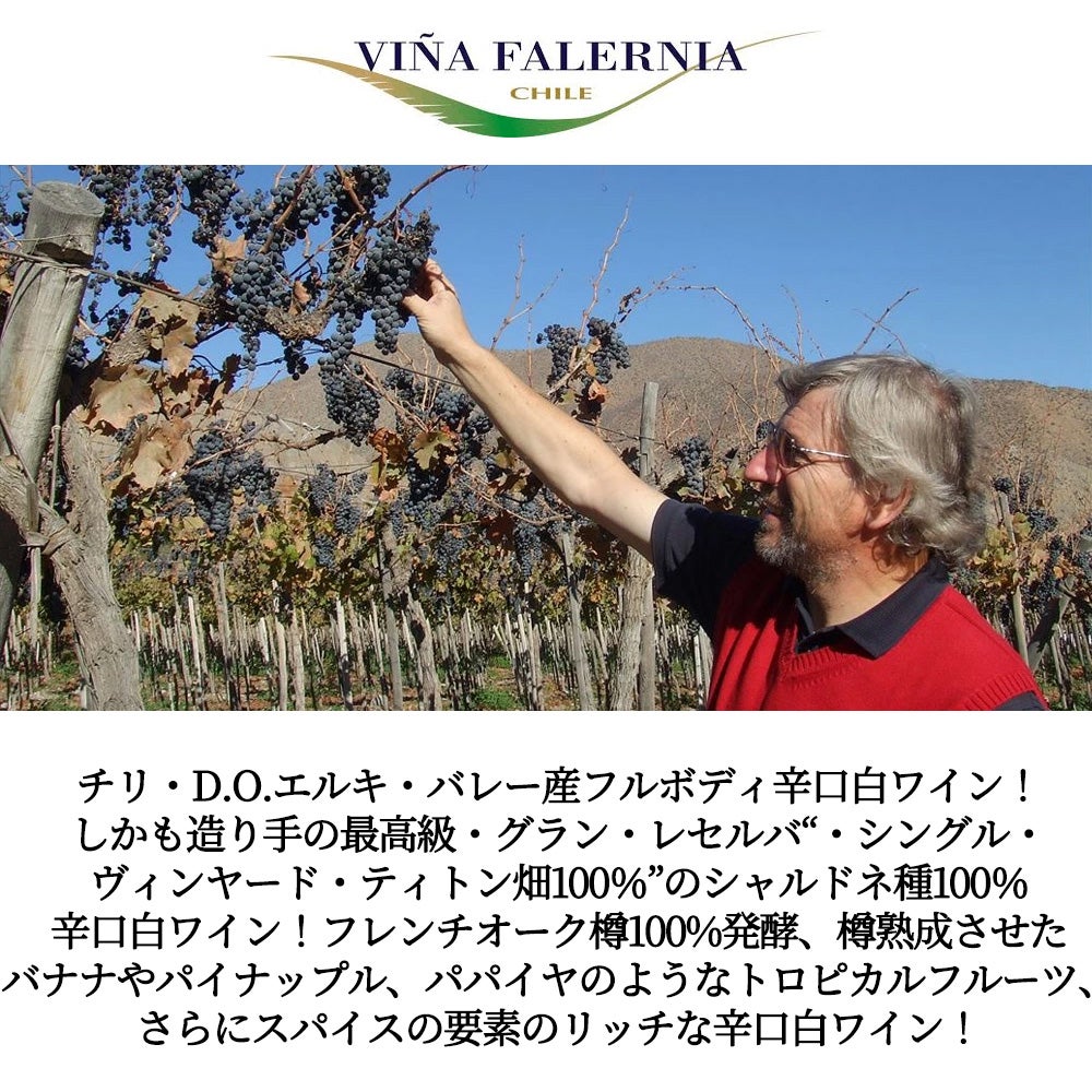 他の画像を見る ビーニャ ファレルニア シャルドネ グラン レセルバ SV ティトン 2023 ビーニャ ファレルニア元詰 D.O.エルキ バレー 重厚ボトルVina Falernia Chardonnay Gran Reserva Titon Single 白ワイン チリ フルボディ 辛口 当店特別価格 ¥ 2,435 税込 カートに入れる お気に入りに登録する