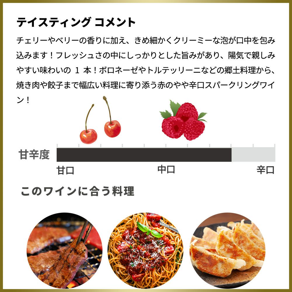 他の画像を見る ラララ スプマンテ ロッソ テッレ チェヴィコ社 イタリア エミリア ロマーニャ ランブルスコ サラミーノ種&ランブルスコ マラーニ種 赤 やや辛口LA LA LA The Sound Of Bubbles Spumante Rosso DRY 赤ワイン スパークリング イタリア やや辛口 当店特別価格 ¥ 1,379 税込 カートに入れる お気に入りに登録する