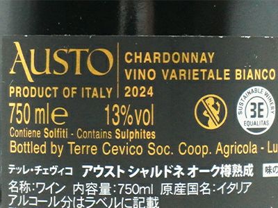 他の画像を見る アウスト シャルドネ オーク樽熟成 2024 テッレ チェヴィコ社 重厚ボトル イタリア ヴィーノ ブランコAusto Chardonnay 2024 Terre Cevico Soc. Coop. Agricola Vino Blanco 白ワイン イタリア 辛口 当店特別価格 ¥ 1,922 税込 カートに入れる お気に入りに登録する