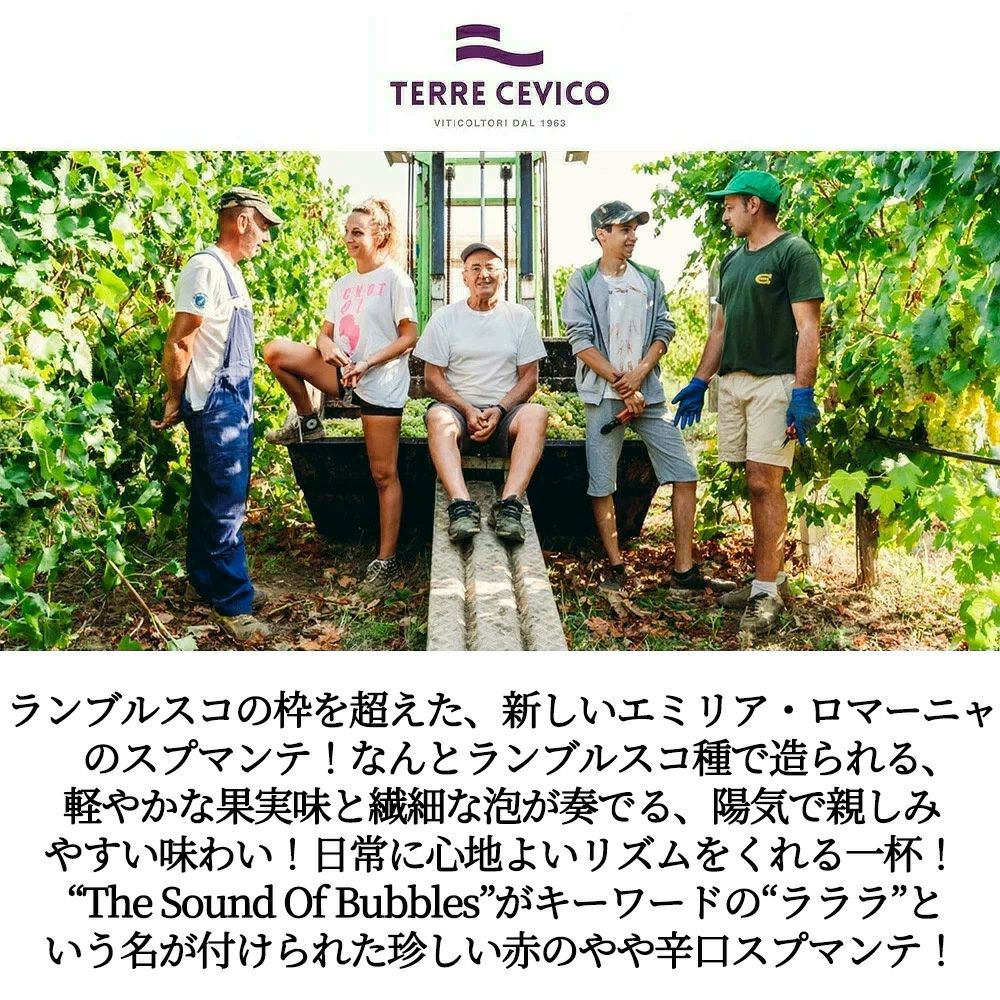 他の画像を見る ラララ スプマンテ ロッソ テッレ チェヴィコ社 イタリア エミリア ロマーニャ ランブルスコ サラミーノ種&ランブルスコ マラーニ種 赤 やや辛口LA LA LA The Sound Of Bubbles Spumante Rosso DRY 赤ワイン スパークリング イタリア やや辛口 当店特別価格 ¥ 1,379 税込 カートに入れる お気に入りに登録する