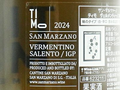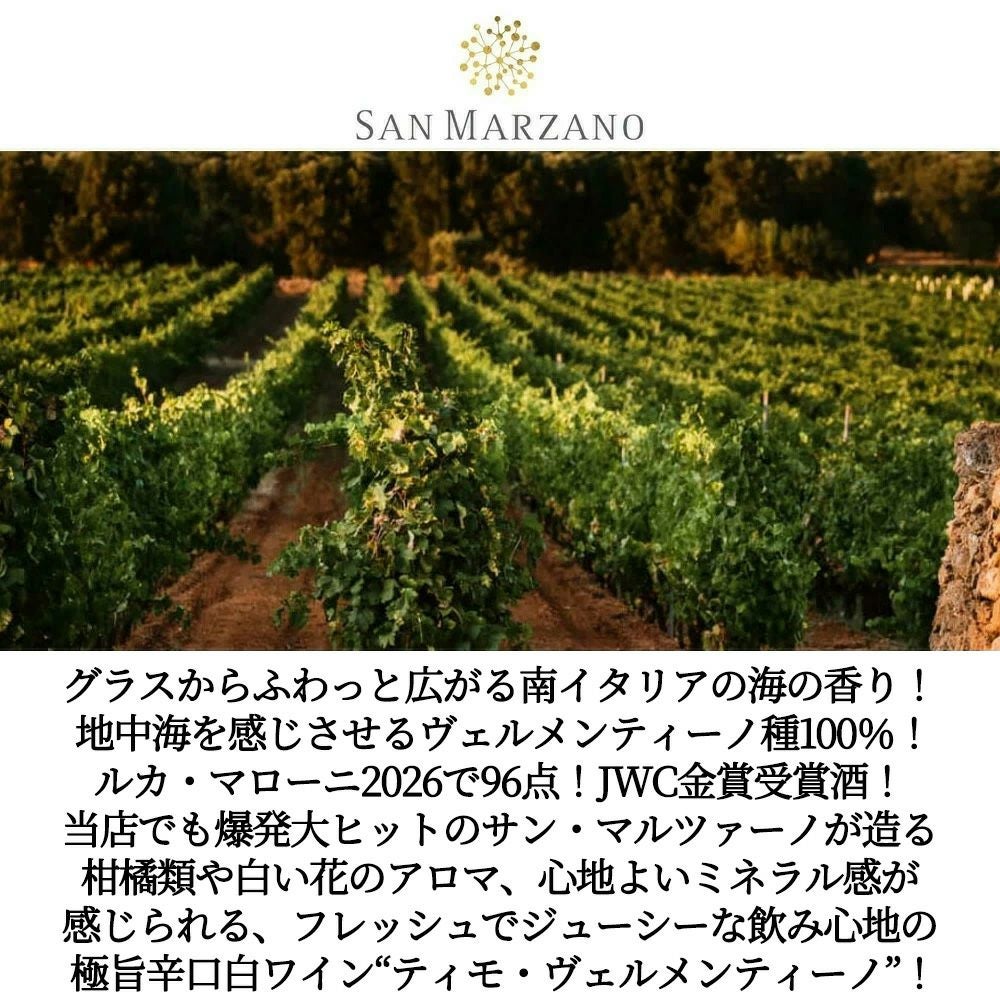他の画像を見る ティモ ヴェルメンティーノ 2024 カンティーナ サン マルツァーノ イタリア プーリア サレントI.G.P. ルカ マローニ 2026にて96点Timo Vermentino Salento IGP 2024 San Marzano 白ワイン イタリア 辛口 当店特別価格 ¥ 1,389 税込 カートに入れる お気に入りに登録する