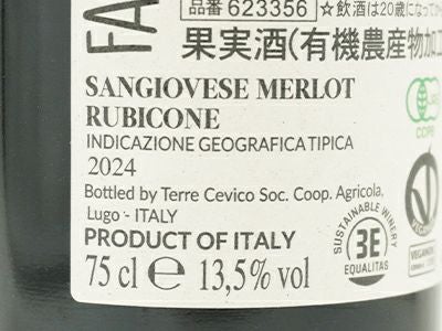他の画像を見る ファルビオ サンジョヴェーゼ メルロー オーガニック 2024 テッレ チェヴィコ社 エミリア ロマーニャ ルビコーネI.G.T. 13.5%Farbio Sangiovese Merlot Organic 2024 Terre Cevico Soc. Coop. Agricola 赤ワイン イタリア ミディアムボディ 当店特別価格 ¥ 1,337 税込 カートに入れる お気に入りに登録する