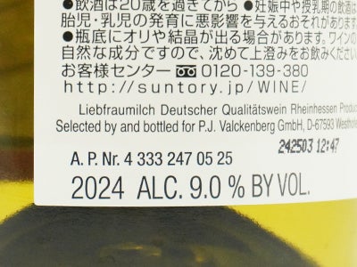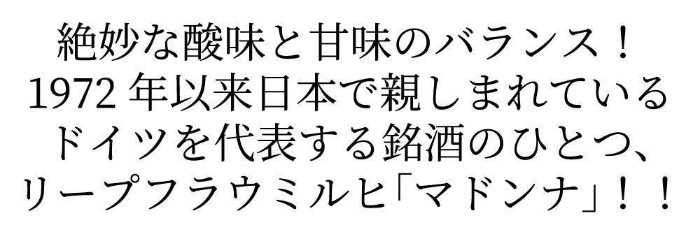他の画像を見る リープフラウミルヒ マドンナ 2024 Q.b.A.(ファルケンベルグ社) ドイツ ラインヘッセン(裏ラベルにロットNo入り)Liebfraumilch Madonna Q.b.A. 2024 P.J. Valckenberg 白ワイン ドイツ やや甘口 当店特別価格 ¥ 1,332 税込 カートに入れる お気に入りに登録する