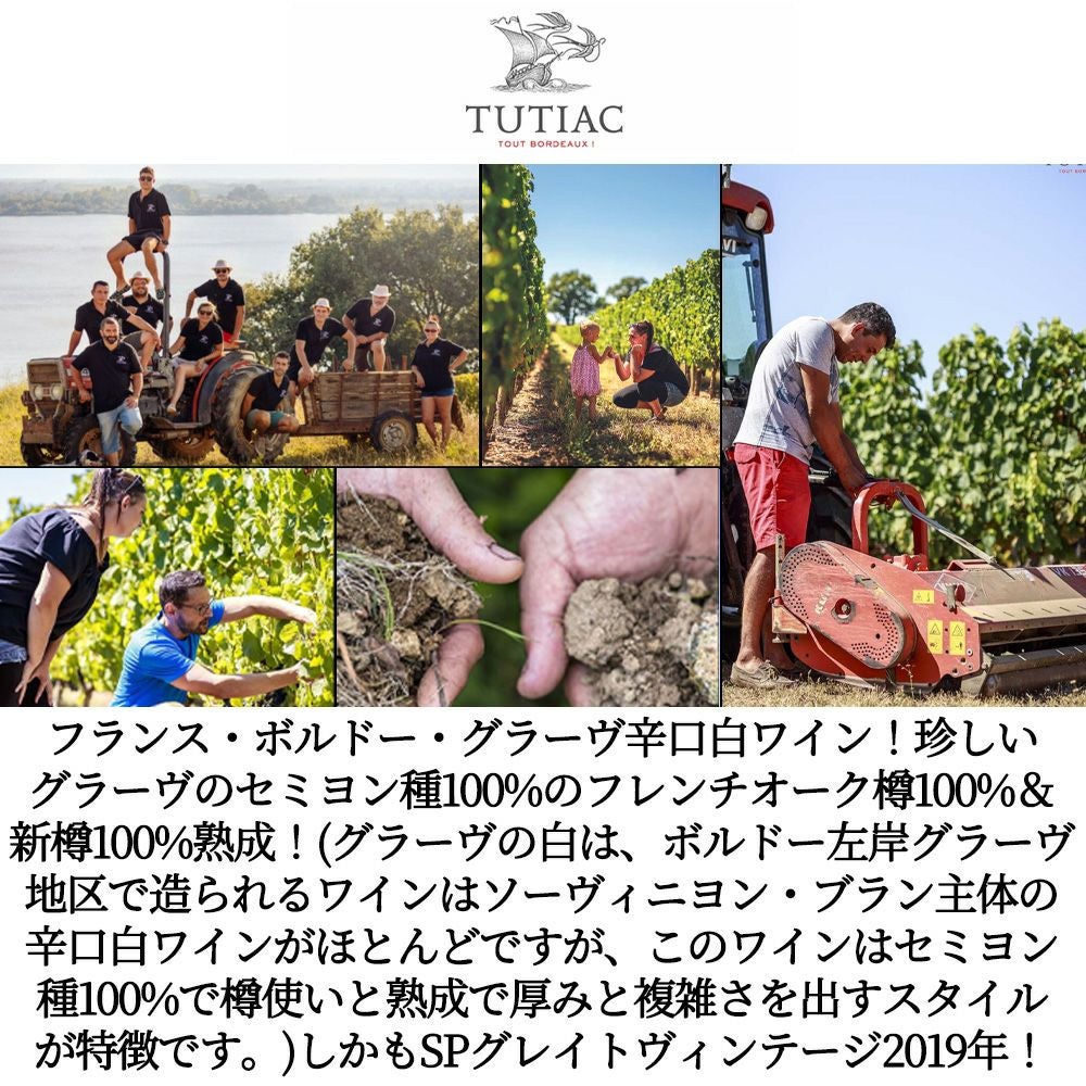 他の画像を見る トゥティアック グラーヴ レセルヴ ブラン 2019 トゥティアック社元詰 セミヨン種100% フレンチオーク樽8ヶ月熟成 AOCグラーヴ ブランGraves Blanc Reserve 2019 Les Vignerons de Tutiac 白ワイン フランス 辛口 当店特別価格 ¥ 1,215 税込 カートに入れる お気に入りに登録する