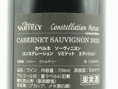 他の画像を見る カベルネ ソーヴィニヨン コンステレーション ホース (星座の馬) リミテッド エディション 2023 シャトー ヴァルテリー 干支 馬 午 ラベルCabernet Sauvignon Constelation Horse Limited Edition 2023 Chateau Vartely 赤ワイン フルボディ 辛口 当店特別価格 ¥ 1,254 税込 カートに入れる お気に入りに登録する