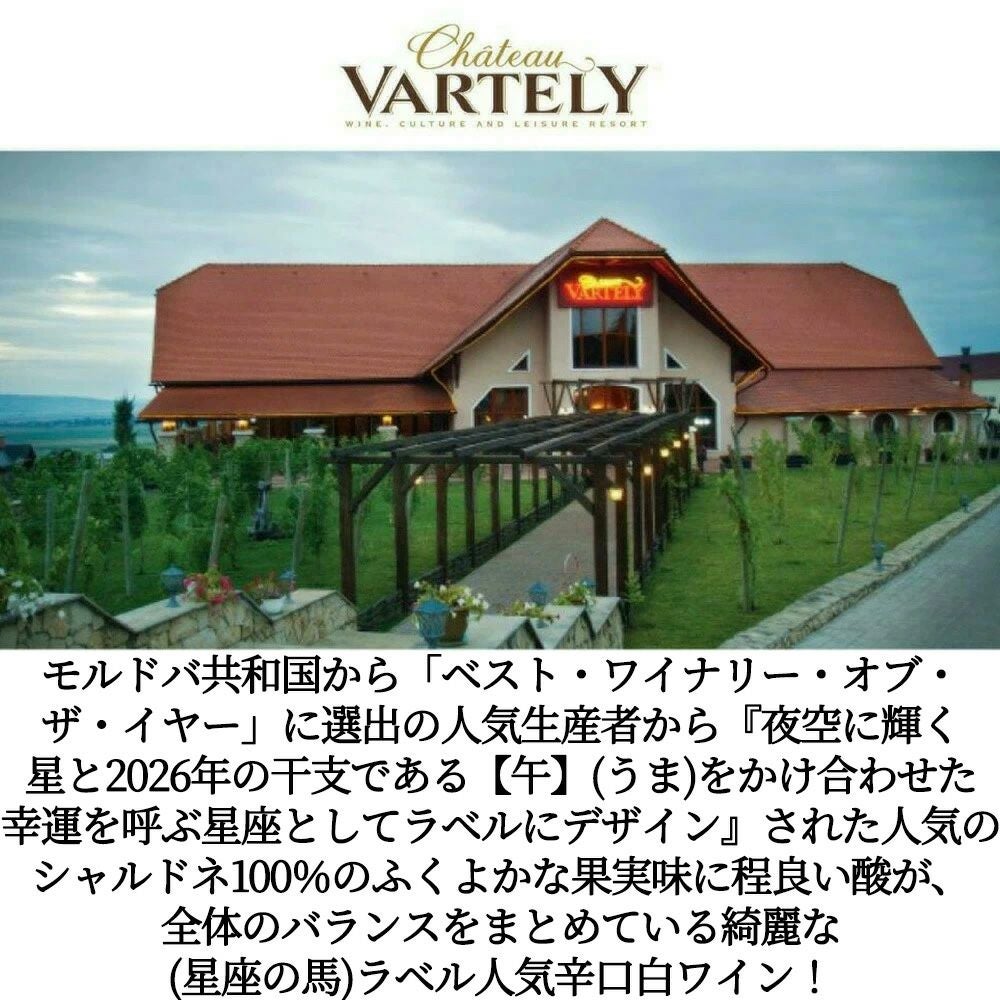 他の画像を見る シャトー ヴァルテリー Ch コンステレーション ホース (星座の馬) リミテッド エディション 2023 限定生産品 シャトー ヴァルテリー元詰Chateau Vartely Chardonnay Constelation Horse 白ワイン 辛口 当店特別価格 ¥ 1,254 税込 カートに入れる お気に入りに登録する