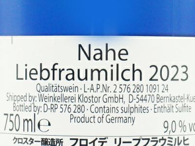 他の画像を見る フロイデ リープフラウミルヒ 2023 Q.b.A. クロスター醸造所 ドイツ ナーエ 白 やや甘口 750ml アルコール度数9%Freude Liebfraumilch 2023 Weinkellerei Klostor 白ワイン ドイツ やや甘口 当店特別価格 ¥ 1,233 税込 カートに入れる お気に入りに登録する