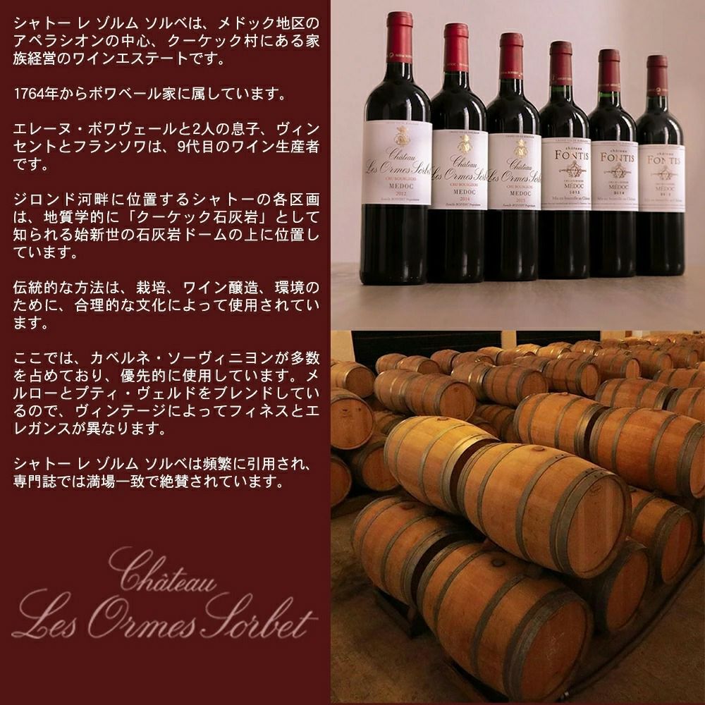 他の画像を見る シャトー レ ゾルム ソルベ 2017 AOCメドック クリュ ブルジョワ シャトー元詰 ボワヴェール家 オークのバリック樽で14ヶ月熟成 赤Chateau Les Ormes Sorbet 2017 AOC Medoc Cru 赤ワイン フランス フルボディ 辛口 当店特別価格 ¥ 2,069 税込 カートに入れる お気に入りに登録する
