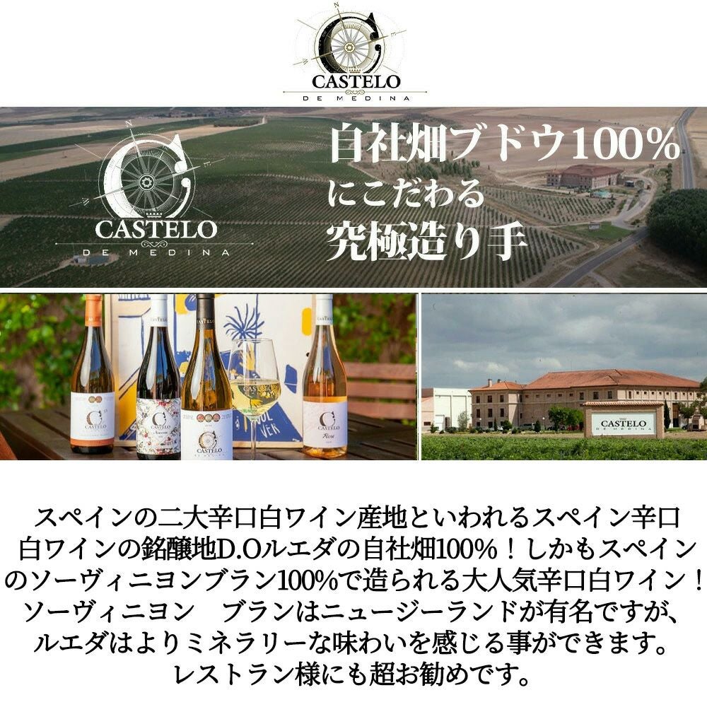 他の画像を見る カステロ デ メディナ ソーヴィニヨン ブラン 2023 ボデガス カステロ デ メディナ元詰 D.O.ルエダ アルコール度数14% スペインCastelo de Medina Sauvignon Blanc 2023 Bodegas 白ワイン スペイン 辛口 当店特別価格 ¥ 2,006 税込 カートに入れる お気に入りに登録する
