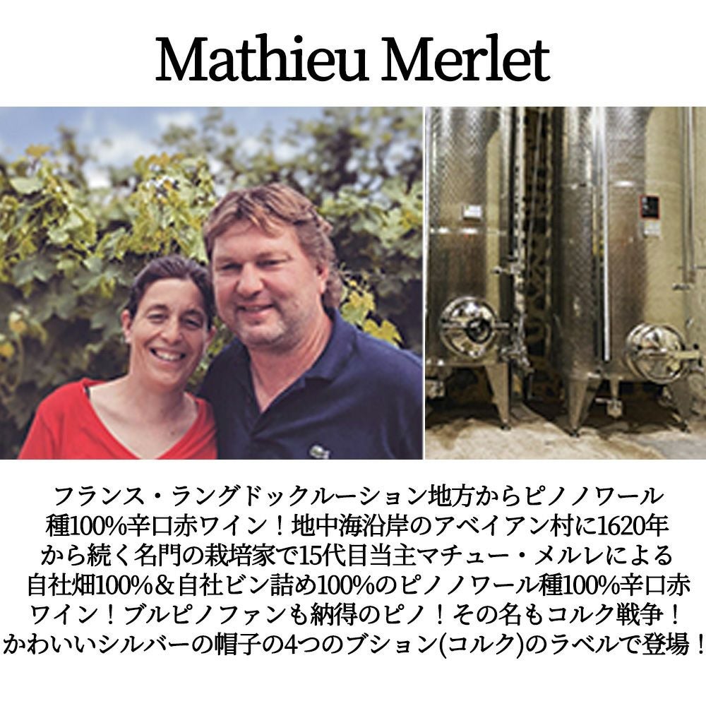 他の画像を見る ラ ゲール デ ブション (コルク戦争) ピノ ノワール 2023 蔵出し限定作品 ドメーヌ マチュー メルレ家元詰 HVEレベル3の認証 13.5%La Guerre des Bouchons Pinot Noir 2023 Domaine 赤ワイン フランス ミディアムボディ 辛口 当店特別価格 ¥ 1,839 税込 カートに入れる お気に入りに登録する