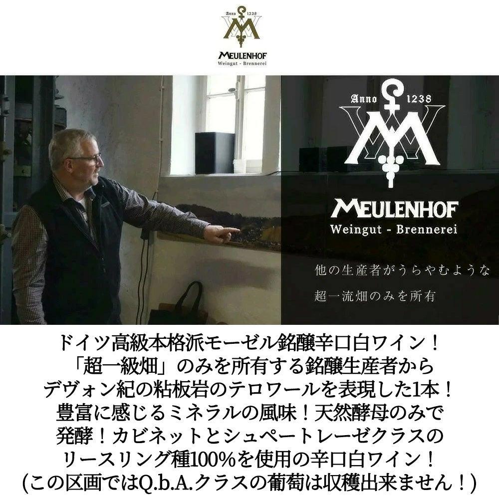 他の画像を見る モイレンホフ ゼロ リースリング カビネット トロッケン 2016 生産者蔵出し限定秘蔵作品 モイレンホフ(ミューレンホフ)元詰 ゴーミヨ誌3ツ星Riesling Kabinett Trocken 2016 Weingut Meulenhof 白ワイン ドイツ 辛口 当店特別価格 ¥ 2,508 税込 カートに入れる お気に入りに登録する